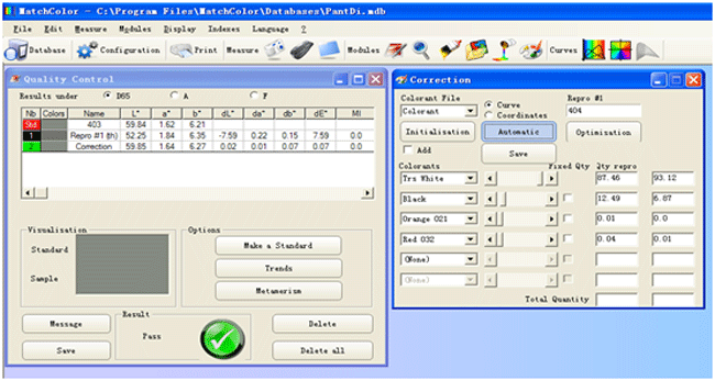 MatchColor to pełne oprogramowanie z 6 modułami. O ile jest bardzo kompletna, jest przeznaczona głównie dla dużej fabryki, która ma laboratorium kolorów z kolorystą używającym go przez cały dzień. 6 modułów to: